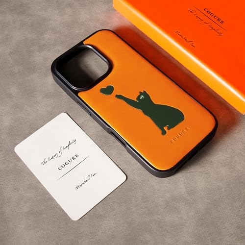 COGURE スマホケース iPhone16Pro用 ケース 本革 イタリアンサドルレザー 猫 キャット cat ハート 耐衝撃 シンプル おしゃれ ギフトボックス付き COTCatA 猫柄A グリーン