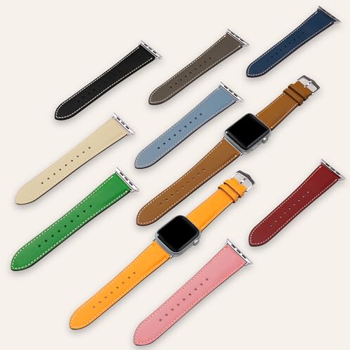 COGURE コグレ Apple Watch バンド 本革 レザーバンド コンパチブル アップルウォッチバンド 交換ベルト レディース 男女兼用 38mm 40mm 41mm 42mm(Series 10) おしゃれ ハンドメイド ギフトボックス付き S02 Mサイズ 革色:グリーン/金具色:シルバー