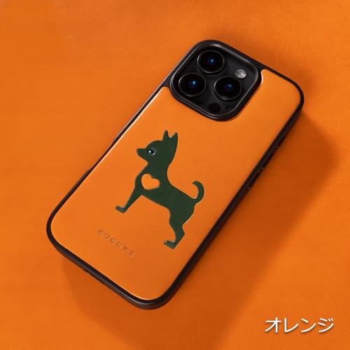 COGURE 互換 iPhone 17 Pro ケース 本革 犬 COT 犬柄B オレンジ