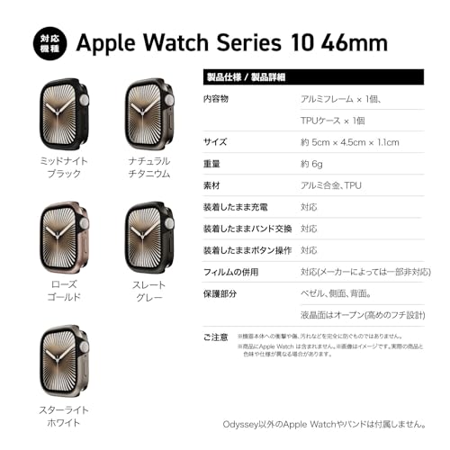 【製品仕様】… ◆ 対応機種 : AppleWatch11 アップルウォッチ 10 46 mm ◆ 内容物 : アルミフレーム × 1個、TPUケース × 1個 ◆ サイズ : 約 5cm × 4.5cm × 1.1cm ◆ 重量 : 約 6g ◆ 素材 : アルミ合金、TPU