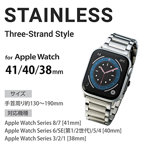 エレコム Apple Watch (アップルウォッチ) バンド 41mm 40mm 38mm [Apple Watch 8 7 SE2 SE 6 5 4 3 2 1 対応] プレミアムステンレス 3連タイプ マット エレガント 長さ調整可 調整工具付き シルバー AW-40BDSS3SV