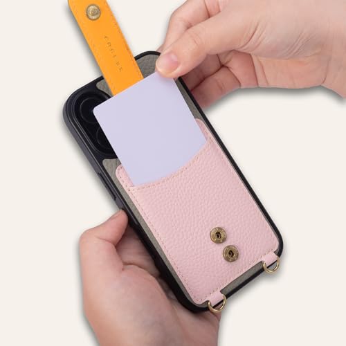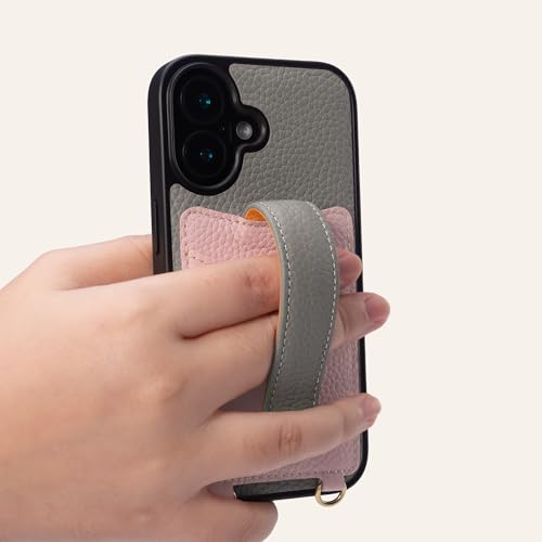 COGUREが独自考案した、斬新な落下防止ベルトデザインが特徴です。スナップボタンで簡単にサイズ調整ができ、ベルトがケースの中央に配置されており、左右から持ちやすいです。ベルトの表側はシュリンクカーフレザー、裏側はスムースレザーで、柔らかく滑らかな触り心地を提供します。