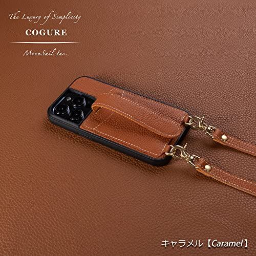 COGURE コグレ iPhone13 ケース ショルダーストラップ 本革 カード収納 落下防止 耐衝撃 ギフトボックス付き COPGC キャラメル【Caramel】