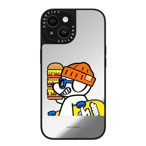 MagSafe 対応ミラー iPhone 15 ケース [反射性 / 1.5mからの落下試験をクリア / MagSafe に対応] - What's UP JOHN! (Mega burger) - シルバー (ブラックバンパー)
