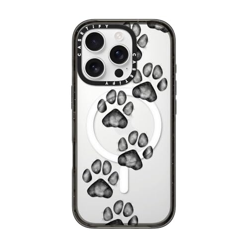インパクト MagSafe対応 iPhone 16 Pro ケース [スリム / 2.5mの落下試験をクリア (MIL規格4倍相当) / ワイヤレス充電およびMagsafe対応] - Small Cute Paw Prints For Dogs And Cats Lovers - クリア ブラック