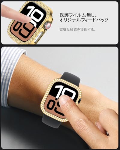 for Apple Watch 10 46mm ケース ダブルダイヤモンド キラキラ 超簿軽量 耐衝撃 装着簡単 アップルウォッチ10 46mm 対応 可愛い 傷防止 保護ケース Apple Watch Series 10 カバー 専用 46mm ゴールド