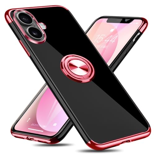 iPhone 16 用 ケース リング付き クリア 耐衝撃 スタンド機能 透明 TPU 車載ホルダー対応 落下防止 防塵 薄型 軽量 一体型 変形防止 全面保護カバー アイフォン 16 用 ケース ピンク W-YXZH-63-06