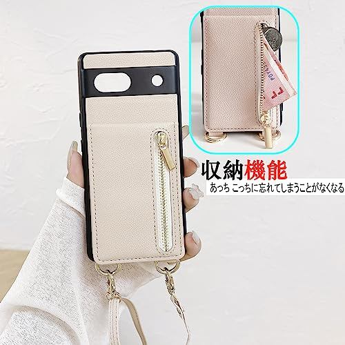Google Pixel 7A ケース 高質レザー Pixel 7A カバー 肩掛け 首かけ 斜めがけ ショルダー ケース ミラーケース 便利 カードポケット スタンド機能 落ち着いた色 調節可能 軽量 多機能 縦置き ICカード収納 財布型 耐衝撃 携帯 鏡付き ケース (むぎいろ)