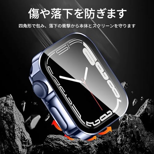 YUGYUG 対応 Apple Watch ケース Series 9/8/7 Apple Watch カバー PC素材 IP68 防水 3D直角エッジデザイン 光沢式 アップルウォッチ ケース ガラスフィルム 一体型 日本旭硝子材 二重構造 アップルウォッチ カバー 全面保護 強化ガラス キズ防止(41mm,ブルー)