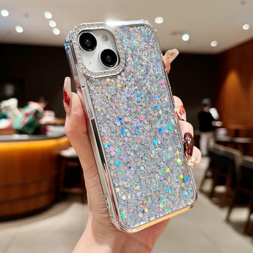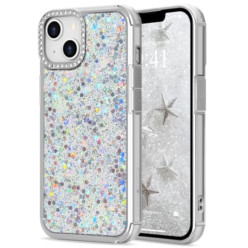 Pepmune iPhone 14/iPhone 13 用 ケース キラキラ ラメ かわいい おしゃれ アイフォン14/アイフォン13 用 バンパーケース 軽量 耐衝撃 人気 韓国 保護 衝撃吸収 落下防止 女性用 可愛い カバー (シルバー)