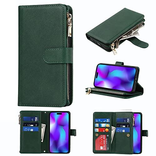 【実用性①:収納力抜群】カード収納が沢山あります。ファスナー式の小銭入れ、窓口式のカード入れ、カードスロット複数付き、それにピタッと閉じるマグネット式の留め具とスナップ式のプリップにより、大事なカードたちを完全に保護します。ちょっとした買い物や散歩にはショルダーにして、スマホだけで出掛けて十分です。