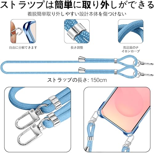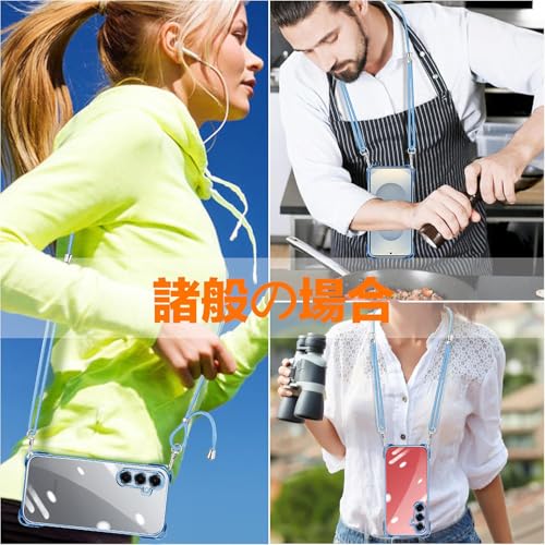 Galaxy S25 用 ケース クリア ショルダー スマホケース ギャラクシー s25 カバー 肩掛け 縄掛けケース 透明 TPU 薄型 耐衝撃 携帯ケース 紐付き 斜めがけ ストラップ着脱可 織りストラップ付き ネックストラップ 縦/横 2WAY 長さ調整可能 取り外し可能 落下防止 紛失防止 ワイヤレス充電対応 かわいい おしゃれ 女性 男性 (ブルー)