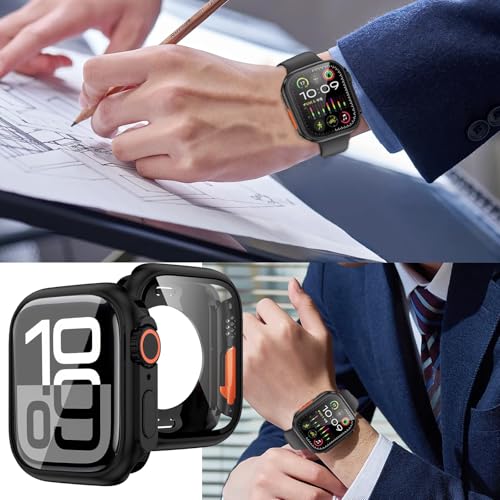【高品質素材】Apple Watch カバーの液晶保護フィルムは硬度9Hの強化ガラスを採用しキズに強く耐久性があり、高解像度で高透過率、タッチもスムーズです、耐傷性、耐衝撃性に優れ。今までの保護ケースを基に改良し、防水機能が向上しました、カラーや見た目はUltraとほぼ同。