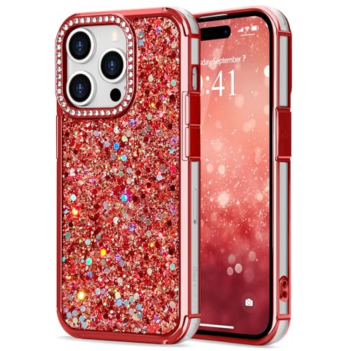Pepmune iPhone 15 Pro 用 ケース キラキラ ラメ かわいい おしゃれ アイフォン15 Pro 用 バンパーケース 軽量 耐衝撃 人気 韓国 保護 衝撃吸収 落下防止 女性用 可愛い カバー (レッド)