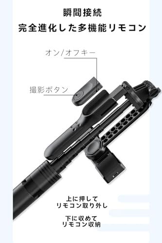 Strelitsia 自撮り棒【2025年革新版・多機能リモコン搭載】スマホ三脚 最大185cm&7段階伸縮・360°回転 軽量・コンパクト・ 三脚安定モデル ミニ テーブル三脚 セルカ棒 携帯撮影&生ライブ配信対応/動画鑑賞などに最適 iOS/Android兼用 (1.85m-ブラック)