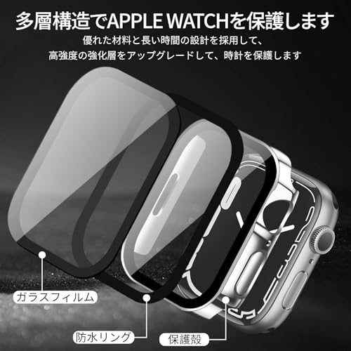 YUGYUG 対応 アップルウォッチ カバー Series 9/8/7 アップルウォッチ ケース PC素材 IP68 防水 3D直角エッジデザイン 光沢式 Apple Watch ケース ガラスフィルム 一体型 日本旭硝子材 二重構造 Apple Watch カバー 全面保護 強化ガラス キズ防止(41mm,シルバー)