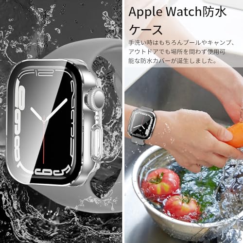 YUGYUG 対応 アップルウォッチ カバー Series 9/8/7 アップルウォッチ ケース PC素材 IP68 防水 3D直角エッジデザイン 光沢式 Apple Watch ケース ガラスフィルム 一体型 日本旭硝子材 二重構造 Apple Watch カバー 全面保護 強化ガラス キズ防止(45mm,クリア)
