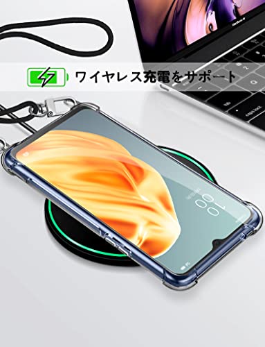 OPPO Reno3 A ケース クリア OPPO Reno3a スマホケース オッポ リノ3A カバー ショルダー 肩掛け 斜めかけ 縄掛けケース 縄掛け 透明 TPU ストラップ付き 薄型軽量 長さ調整可能 取り外し可能 スマホ 首掛け ストラップ 落下防止 透明 縄掛け -ブラック