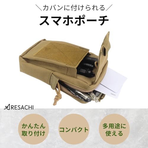 ARESACHI ベルトポーチ スマホポーチ ミリタリー ポーチ 小物入れ スマホ リュック (カーキ)