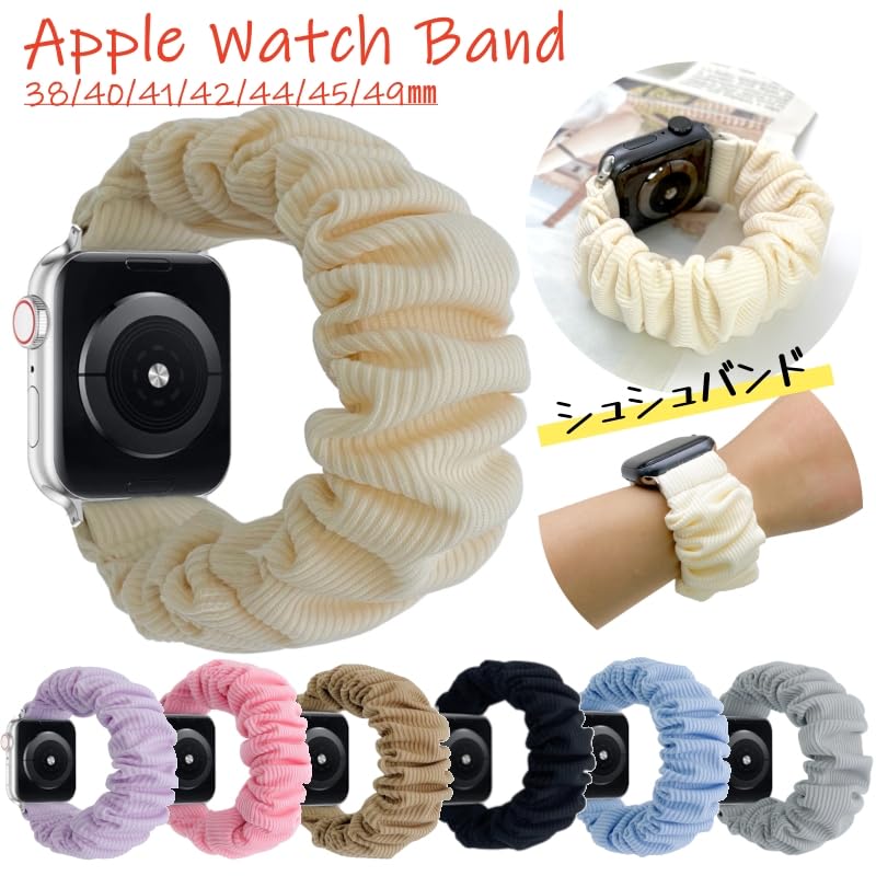 HYUNGJ アップルウォッチ 替え バンド シュシュ 金具無し おしゃれ ベルト apple watch series 9 8 7 6 5 4 3 2 SE シンプル 寝る スポーツ 可愛 レディース アクセサリー 41mm 38mm 40mm 42mm 44mm 45mm 49mm band 時計ベルト 時計バンド 替えベルト シリーズ 女性 韓国 ins 大人 かわいい (S腕周り13㎝-38/40/41㎜, グレー)