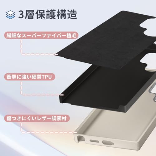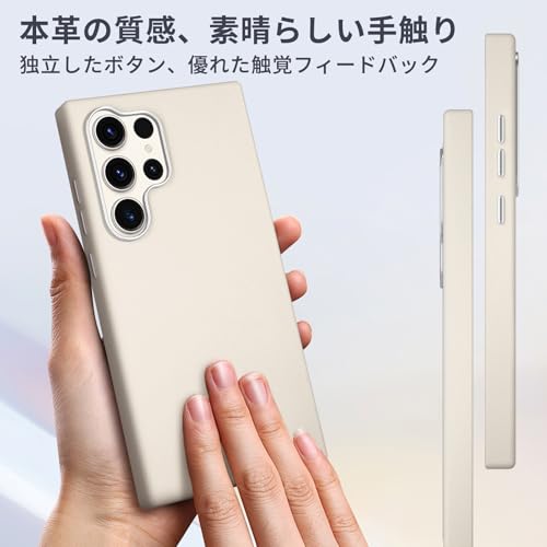 LAYBAOHOWSG Galaxy S24 Ultra ケース [レザー の質感純色スマホケース] ギャラクシー S24 Ultra スマホケース 耐衝撃 薄型 シンプル 肌感革の質感 SC-52E SCG26 カバー 滑り止め レトロ 軽量 指紋防止 オシャレ,ホワイト