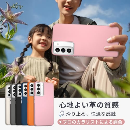 LAYBAOHOWSG Galaxy S22 ケース [レザー の質感純色スマホケース] ギャラクシー S22 スマホケース 耐衝撃 薄型 シンプル 肌感革の質感 SC-51C SCG13 カバー 滑り止め レトロ 軽量 指紋防止 オシャレ,ピンク