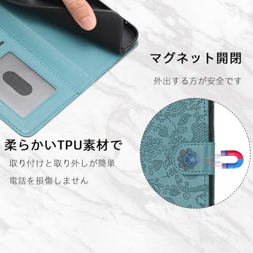 Google Pixel8 ケース 手帳型 グーグルピクセル8 ケース 手帳型 Googleピクセル8 ケース 手帳型 携帯ケース グーグルピクセル8 ピクセル8 ケース カード収納 スマホケース グーグルピクセル8 ストラップ付 グーグルピクセル8 ケース スタンド機能 カード収納 ピクセル8 ケース 財布型 Google Pixel 8 カバー 手帳型 高级PUレザー 軽量 薄型 花柄 - 青