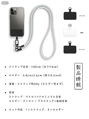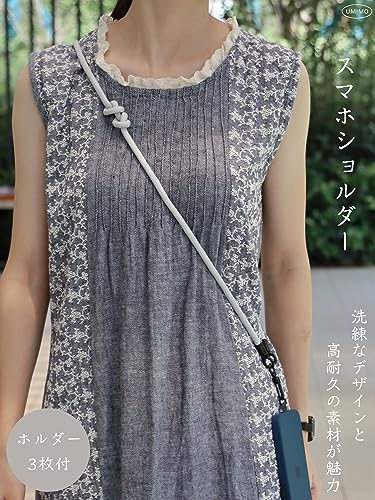 UMIMO スマホショルダー 直径7mm 【ホルダー3枚】 スマホストラップ アウトドア 携帯ストラップ 斜めがけ 肩掛け 首掛け 落下防止 調節可能 全機種対応 (ライトグレー)