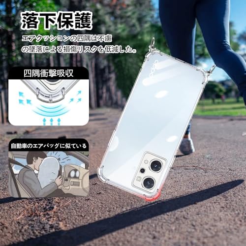 OPPO Reno9 A / Reno7 A ケース クリア ショルダー oppo reno9a reno7a スマホケース OPG04 ケース オッポ レノ9A 7A カバー 肩掛け 斜めかけ 縄掛けケース TPU 耐衝撃 薄型 軽量 紐付き 斜めがけ 織りストラップ付き ネックストラップ ショルダー ケース 長さ調整可能 取り外し可能 落下防止 紛失防止 (透明)