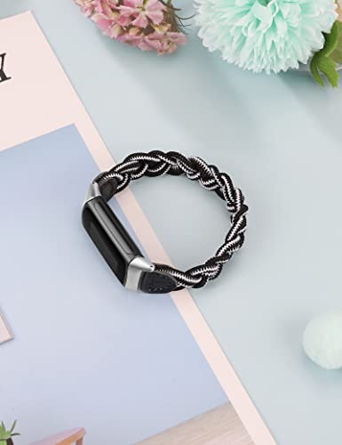 Wearlizer Fitbit Charge6/Charge5バンド フィットビット チャージ6/チャージ5に対応 【2023年最新スタイル】Fitbit Charge5 デッドソロループ 編組バンド スポーツバンド 交換ベルト 柔らかいシリコーン糸混紡リサイクルヤーン素材 耐衝撃 防汗(ブラック+ホワイト M)