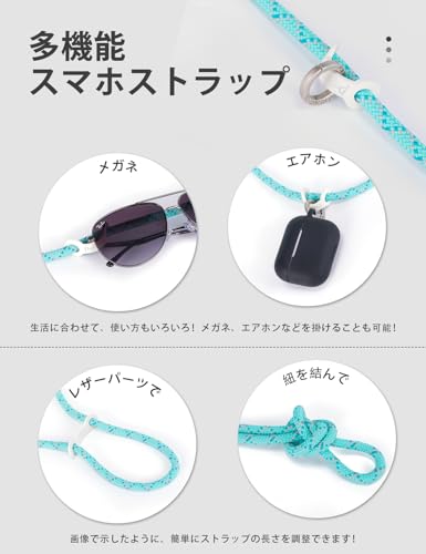 [project-cb] スマホストラップ 首掛けストラップ 斜めがけストラップ ストラップホルダー *2 ショルダー 肩掛け 落下防止 調整可能(グリンー)