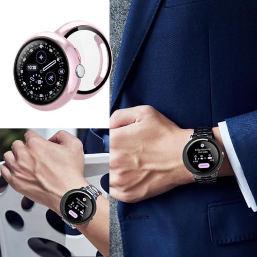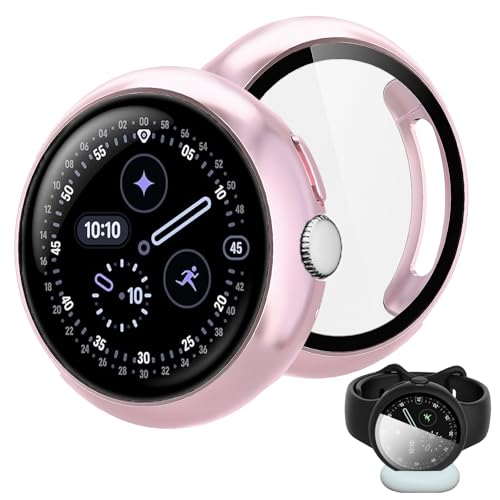 BUITFOU For Google Pixel Watch 4 カバー 45MM Pixel Watch 4 カバー 充電をサポート 超薄型 PC+ガラス素材 一体型 全面保護 装着簡単 耐衝撃 高透過率 指紋防止 傷防止(45MM,ローズゴールド)