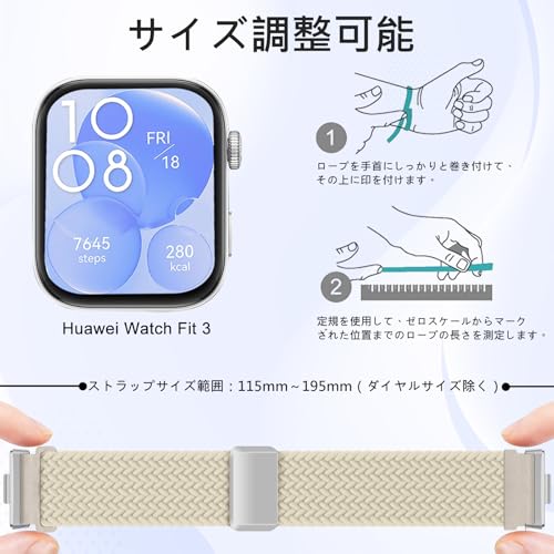 [ZoRoll] ナイロンバンド 用の Huawei Watch Fit 4 Pro/Fit 4 / Fit 3 対応 編み伸縮性 腕時計ベルト スポーツストラップ スマートウォッチバンド ソフト 通気性 交換バンド 磁気クラスプ 脱着便利 男女兼用 替えベルト 用の HUAWEI WATCH FIT4 PRO / FIT4 / FIT3 対応 (オフホワイト)