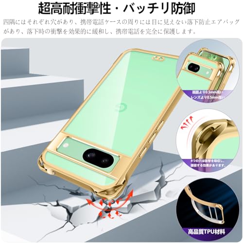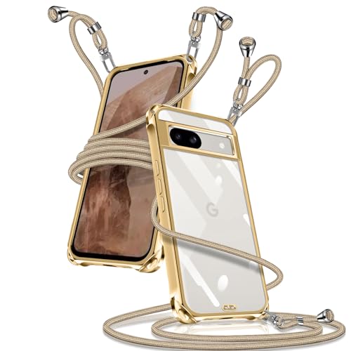 Google Pixel 8a ケース クリア ショルダー Google Pixel 8a スマホケース 携帯ストラップ ピクセル8a カバー 肩掛け 斜めかけ 縄掛けケース 透明 薄型 軽量 TPU 携帯ケース 紐付き 斜めがけ 織りストラップ付き 長さ調整可能 取り外し可能 落下防止 紛失防止(ゴールド)