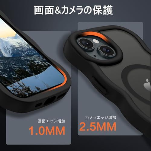 波型エッジ&高品質TPU素材 : 波型エッジで握りやすいです。iPhone15ケースは柔らかいTPUと硬いPCで作られており、衝撃を吸収し、黄ばみにくい特殊なTPU素材を採用しています。薄くて丈夫で柔軟性が高く、適度なグリップ感があり、本体のスリムさを最大限保つように設計されています。