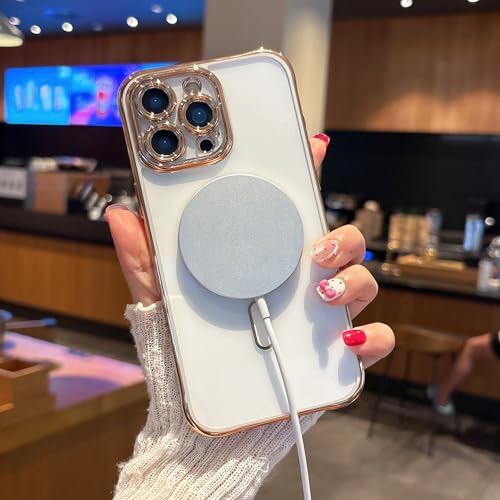 ZTOFERA iPhone 16 Pro Max用 クリアケース MagSafe対応 マグネット搭載 いphone16 Pro Max ケース 韓国 可愛い おしゃれ 人気 アイフォン16 Pro Max スマホケース 軽量 女性 アクリル ハードバック 柔らかいバンパー カバー メッキエッジ 落下防止 耐衝撃 マグセーフ対応 磁気ケース (ブラック)