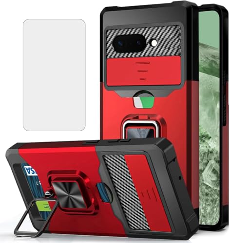 NKECXKJ Google Pixel 9a 用ケース + 强化 ガラス フ フィルム 財布型カード収納 スマホケース 横置き機能リング スタンド 耐衝撃 Case Cover グーグルピクセル9a Google9a ぐーくるぴくせる9a googleピクセル9a 対応 背面 カバー レディース メンズ(赤)
