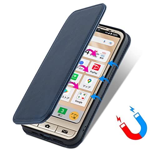シンプルスマホ7 シンプルスマホ6 BASIO Active Active2ケース 手帳型 A201SH SHG09 SHG12 カバー 全面保護 衝撃吸収 カード収納 スタンド機能 内蔵マグネット式 レトロネイビー