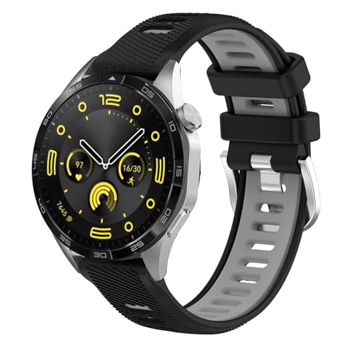[SHEAWA] for HUAWEI WATCH GT 6/5 Pro 46mm/GT6 46mm バンド ベルト 交換バンド 通気性に優れ シリコン WATCH GT5/4/3 Pro 46MM 替えベルト 互換品 22mm ストラップ アクセサリー (ブラック+グレー)