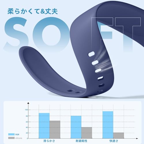 【柔らかく快適】このアップルウォッチ バンド 40mmは高い強度を持ちながらも、専用の高性能フルオロエラストマーで作られているので耐久性が高く、滑らかで緻密な素材が優雅に手首に巻きつき、肌に心地よい触感を与えます。長時間装着しても不快感を感じることはありません。