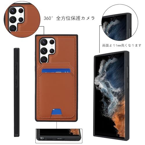Havaya Galaxy S22 ultra ケース MagSafe 対応 ギャラクシーs22 ultra ケース マグセーフ SC-52C 耐衝撃 SCG14 au S22ウルトラ 背面 カード収納 分離式 取り外し可能 ワイヤレス充電対応 フェイクレザー-ブラウン