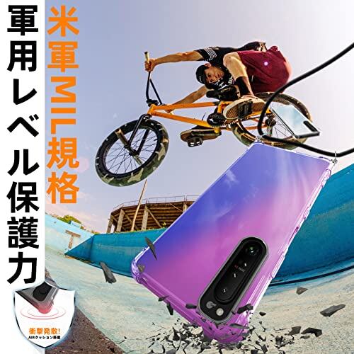 Xperia XZ3 ケースSO-01L SOV39ケース クリア ショルダーストラップ TPU 透明 カバー 耐衝撃 軽量 薄型 スマホショルダー]スマホショルダー 肩掛け 紐付き 斜めがけ SO-01L SOV39 ケース 紫-ブルー 08007-XZ3-02