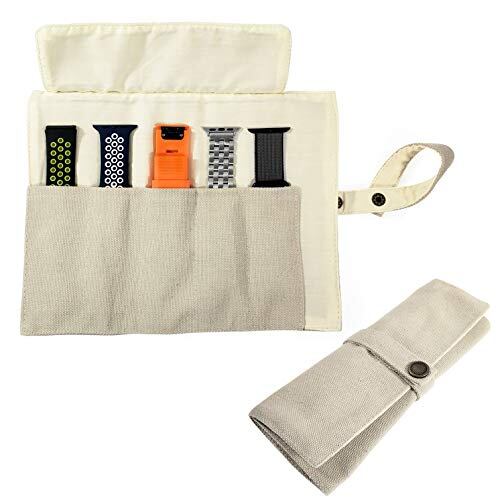 スマートウォッチバンド 収納バッグ 5本格納 キャンバスポータブル ウォッチバンド ホルダー 用のApple/Garmin/Samsungなどのスマートウォッチ交換バンドを保管 (うすい灰色)