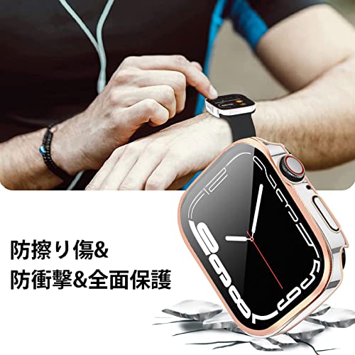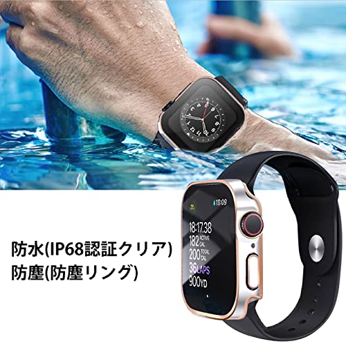 YUGYUG 対応 アップルウォッチ カバー Series 9/8/7 アップルウォッチ ケース PC素材 IP68 防水 3D直角エッジデザイン 光沢式 Apple Watch ケース ガラスフィルム 一体型 日本旭硝子材 二重構造 Apple Watch カバー 全面保護 強化ガラス キズ防止(41mm,ブラック+シルバー)