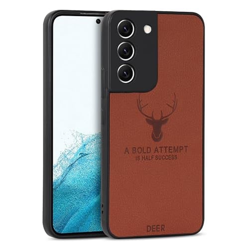 JOOBOY Galaxy S22 ケース 耐衝撃 薄型 レンズ保護 コンパクト PC素材 背面 高級なPUレザー ハードカバー マット加工 指紋防止 カメラ保護 携帯カバー ギャラクシーs22 カバー (Galaxy 22, brown)
