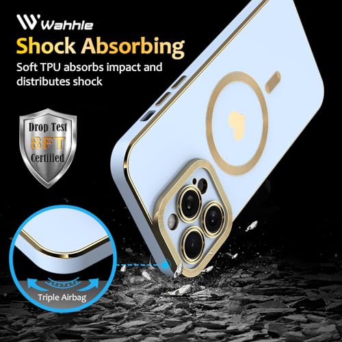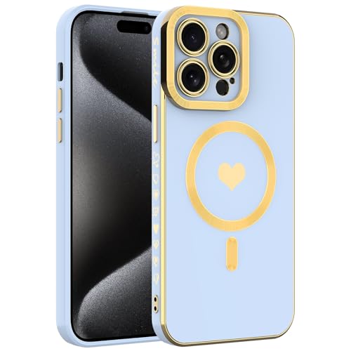 wahhle iPhone 12 Pro Maxに適したマグネットケース、豪華メッキがかわいいハート型ケースはMagsafeと互換性があり、カメラプロテクター付きの女性向け(iPhone 12 Pro Max,Blue)
