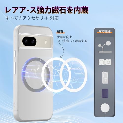 Google Pixel8a ケース MagSafe対応 クリア カバー グーグル ピクセル8a 耐衝撃 スマホケース 米軍MIL規格 PC背面 TPU 保護ケース ストラップホール付き クリアバック 落下防止 ホワイト