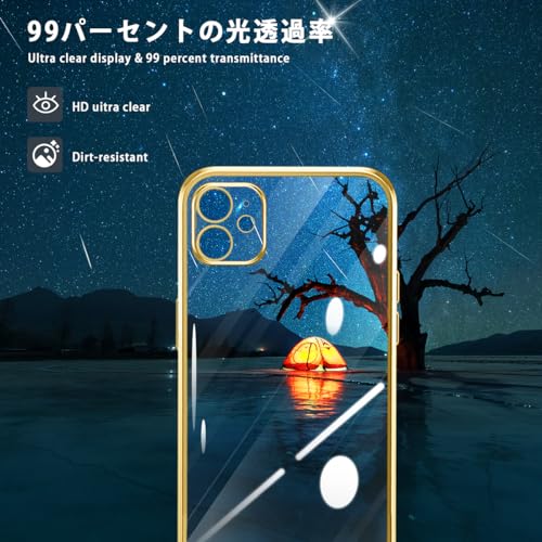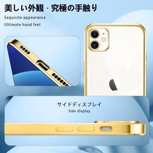 JOUMIN YAO に適合する iPhone 12 用の ケース クリア TPU 黄ばみにくい 韓国 いpほね12 用の カバー ソフト 透明 スマホケース TPU 薄型 耐衝撃 軽量 メッキ加工 携帯カバー ストラップホール付き 落下防止 擦り傷防止 6.1インチ(ゴールド)