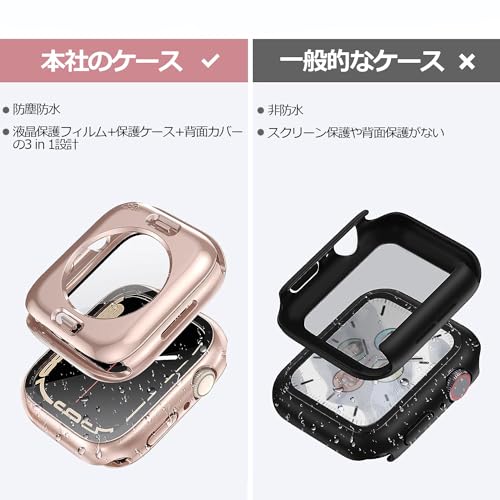 【360度防水設計】DIKESHGU for Apple Watch 防水ケース Series9/8/7 45mm アップルウォッチ保護カバー+背面保護ケース 2in1防水 高タッチ感度 全面保護 衝撃吸収 高透過率 指紋防止(ローズゴールド,45mm)