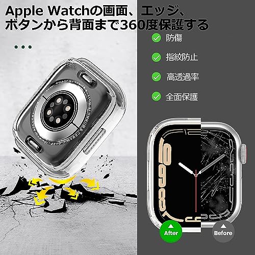 【360度防水設計】DIKESHGU for Apple Watch 防水ケース Series9/8/7 45mm アップルウォッチ保護カバー+背面保護ケース 2in1防水 高タッチ感度 全面保護 衝撃吸収 高透過率 指紋防止(クリア,45mm)